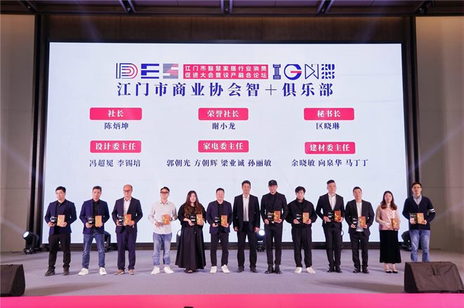 值得关注的是,本次活动正式发布“智+俱乐部”成立—— 这一平台聚焦设计、建材、装修、电器四大领域,未来将通过主题沙龙、技术讲座、企业参访等活动,联动政企校研资源破解行业协作堵点,与我会 “链接设计与产业” 的使命形成互补,我会两位理事及两位会员、一线设计师-陈炳坤、区晓琳、冯超冕、李锡培将担任该俱乐部的社长、秘书长及设计委主任等职,实现省协会内部设计力量与地方平台作精准对接,为后续推动设计与江门产业结合筑牢了政策基础,进一步打破了地域间的行业壁垒、扩大“设产融合”的辐射范围。